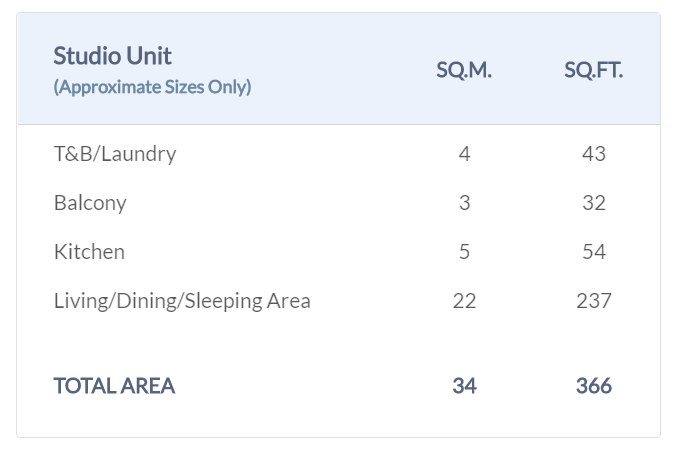 TOTAL AREA SIZE RANGE
