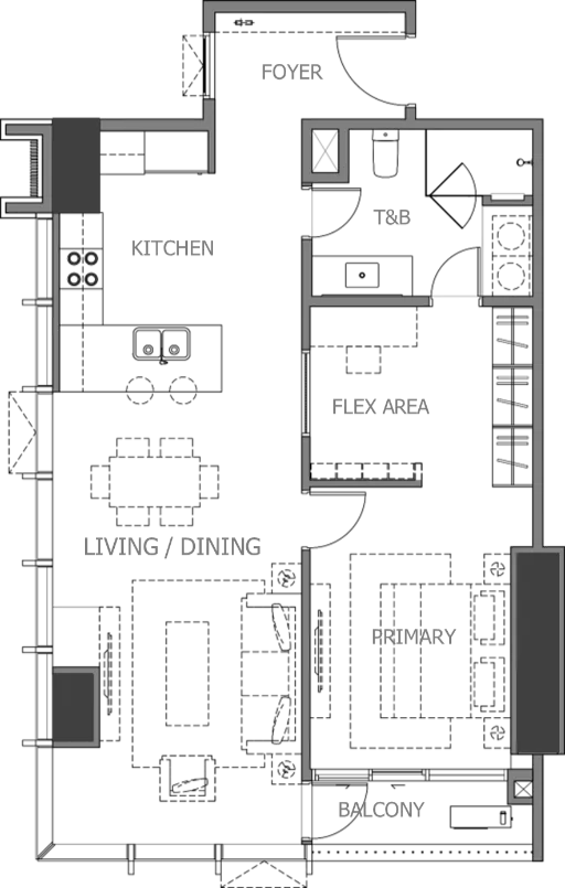 Experience refined urban living in a thoughtfully designed space perfect for singles or couples. The Suite features an open layout, elegant finishes, and large windows that invite natural light — creating a warm and sophisticated retreat within the city.
