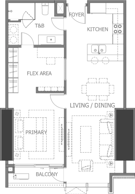 The 2BR Glass Unit offers an open, airy atmosphere complemented by fine finishes and modern conveniences, ideal for those who desire a blend of sophistication and functionality in their everyday living.
